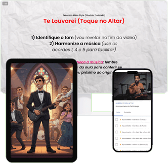 Aqui você vai dominar o cenário mais desafiador para todo músico de igreja: acompanhar um cantor (muitas vezes desafinado) na hora, sem ter ensaiado ou combinado as músicas antes.