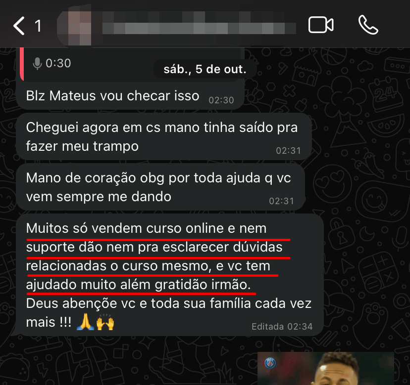 👉 Você tem suporte INDIVIDUAL via WhatsApp para tirar todas as suas dúvidas!